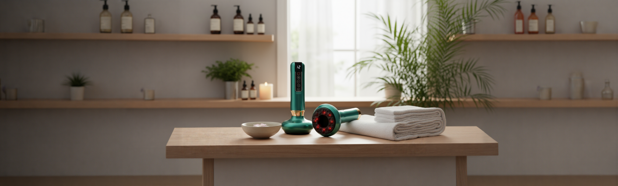 Gentle heat helps relax muscles, improve elasticity, and enhance absorption of body-care treatments.